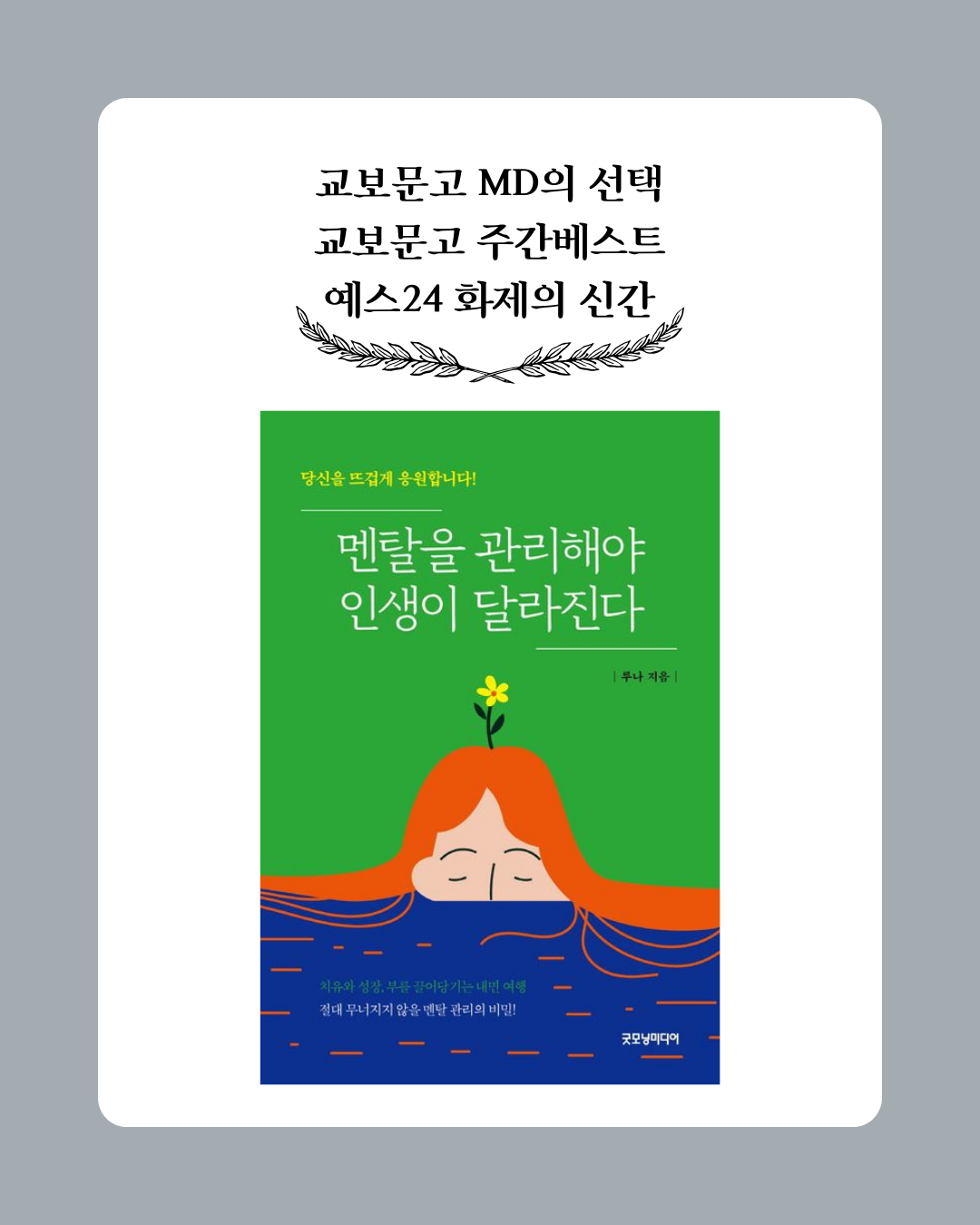 교보문고 MD의 선택·주간베스트·예스24 화제의 신간 선정 《멘탈을 관리해야 인생이 달라진다》 저자 루나 소장님과 함께하는 8월 멘탈 관리 웨비나!